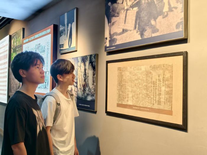 尤為引人注目的是館內(nèi)保存完好的辦公用具、信函文稿、抗戰(zhàn)時期的報刊雜志和書信手跡等文物。這些展品雖靜默無聲,卻生動再現(xiàn)了當(dāng)年抗戰(zhàn)時期八路軍在桂林開展工作時的真實情景,使隊員們仿佛穿越時空,與那一段崢嶸歲月遙相呼應(yīng)。