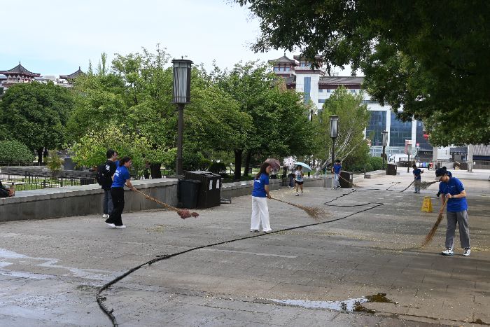 圖2 實踐小隊成員參與大雁塔廣場衛(wèi)生工作