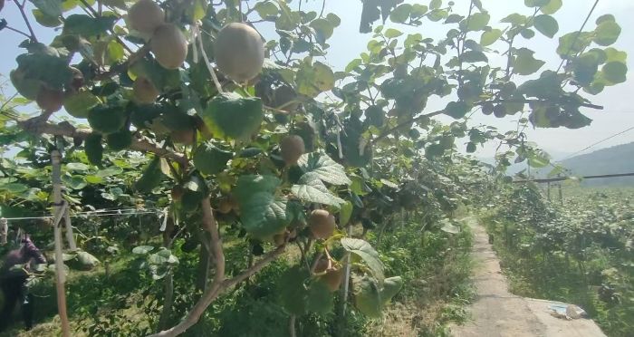 活動當日,一進入基地,放眼望去,成片的獼猴桃藤蔓沿著支架攀爬生長,綠葉繁茂,長勢喜人。在基地負責人的帶領(lǐng)下,團隊成員們深入田間地頭,仔細觀察獼猴桃的生長情況,了解富硒技術(shù)在獼猴桃種植過程中的應(yīng)用細節(jié),包括土壤改良、施肥管理、病蟲害防治等方面。通過實地查看,大家切實感受到了富硒技術(shù)對于提升獼猴桃品質(zhì)和產(chǎn)量的重要作用。