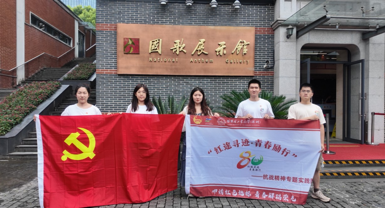 圖為實(shí)踐團(tuán)成員在國(guó)歌展示館前合影