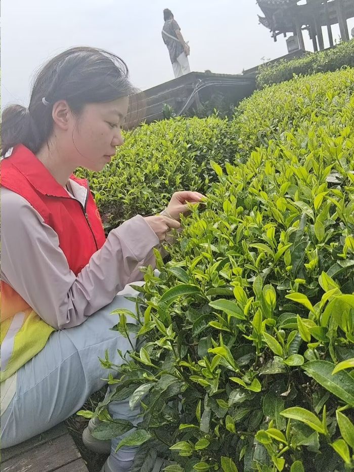 休息時,隊員們坐在茶園邊的石階上,看著竹簍里不多的茶葉,反倒覺得格外珍貴。“采得少,但學得真不少。”有人說,采茶時的專注、服務時的耐心,其實和學醫(yī)時的要求很像——都得沉下心,把每一個細節(jié)做好。大家聊著游客的笑臉,說著茶農講的種茶故事,風里飄來的茶香里,仿佛也多了幾分成長的味道。