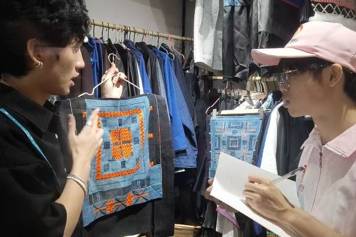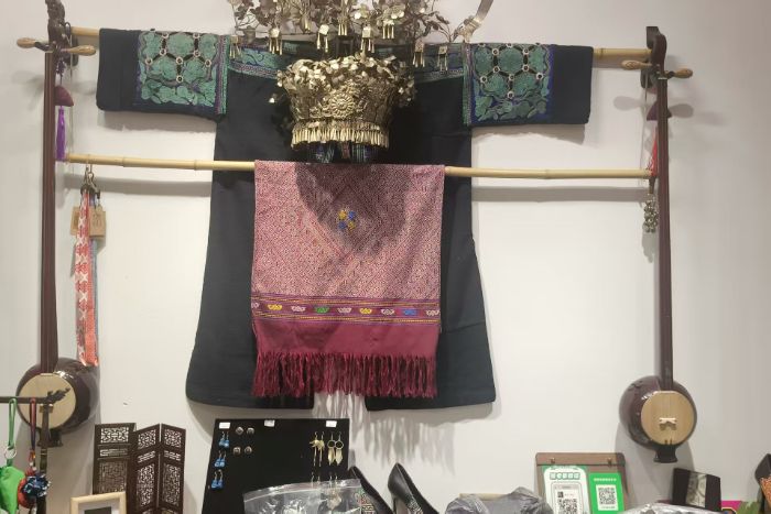 此外,志愿隊關(guān)注到洛老師在非遺與現(xiàn)代生活融合方面的實踐。洛老師致力于將非遺元素融入日常生活,其設(shè)計的壯錦記事本使用半幅壯錦裝飾以貼合年輕化需求,麼乜耳墜縮小尺寸契合現(xiàn)代審美,在保留傳統(tǒng)元素基礎(chǔ)上,兼顧現(xiàn)代款式與新面料運用。洛老師提及,需對傳統(tǒng)技藝進行提煉,將精華部分以更直觀方式呈現(xiàn),使非遺手工藝品符合現(xiàn)代審美與生活需求,推動傳統(tǒng)文化“活”在新時代。當?shù)卮蛟斓?ldquo;薩瑪非遺生活館”坐落在現(xiàn)代化設(shè)計咖啡館內(nèi),民族元素與現(xiàn)代空間碰撞融合,為非遺傳播提供新場景。洛老師還收到邀約參加張家港守望長江·民俗文化市集,將廣西民族文化帶至浙江,這些實踐為志愿隊理解非遺傳承創(chuàng)新提供了鮮活案例。