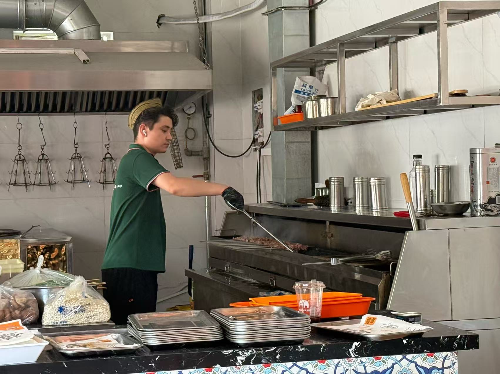 對(duì)新疆同胞而言,特色餐飲是其立足內(nèi)地的重要生計(jì)依托。經(jīng)營(yíng)者憑借差異化優(yōu)勢(shì),以小成本創(chuàng)業(yè)在競(jìng)爭(zhēng)激烈的市場(chǎng)中贏得空間,部分成功者已實(shí)現(xiàn)增開分店、拓展外賣的業(yè)務(wù)升級(jí)。餐館運(yùn)營(yíng)同時(shí)帶動(dòng)關(guān)聯(lián)就業(yè),形成涵蓋食材采購(gòu)(部分堅(jiān)持從新疆原產(chǎn)地購(gòu)入)、烹飪加工、餐飲服務(wù)的小型“產(chǎn)業(yè)鏈”,惠及同鄉(xiāng)與本地員工群體。