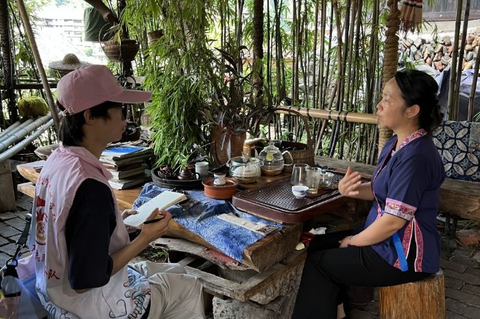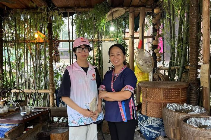 志愿者了解并記錄侗語問候語“Ya Lai”(你好),設(shè)計(jì)了“普通話+侗語”對(duì)照卡構(gòu)建雙語橋梁。通過“榫卯幾何課”“長(zhǎng)桌宴哲學(xué)課”,將程陽八寨入選廣西精品研學(xué)線路的優(yōu)勢(shì)轉(zhuǎn)化為傳承動(dòng)能。