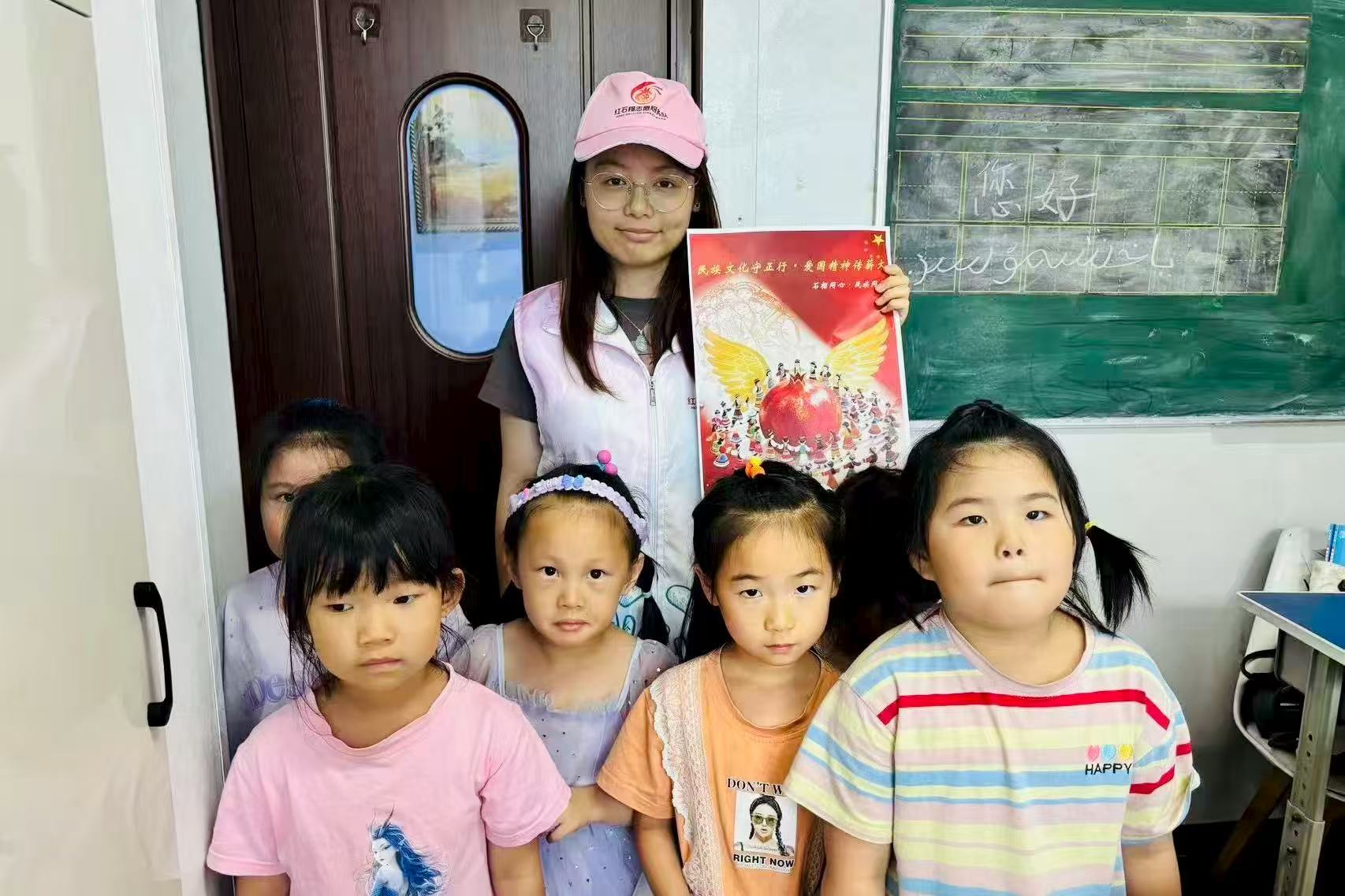 2025年7月21日,南京師范大學(xué)泰州學(xué)院“石榴同心·民族同行”暑期社會實踐團(tuán)隊前往江蘇省昆山市婳機(jī)構(gòu)教室,開展了以“童心筑橋·語潤文化 ”為主題的實踐活動。實踐團(tuán)隊帶領(lǐng)8名小學(xué)生,通過語言教學(xué)、互動游戲、歌曲演唱等形式,幫助孩子們初步了解少數(shù)民族語言與文化,搭建民族交流的橋梁。