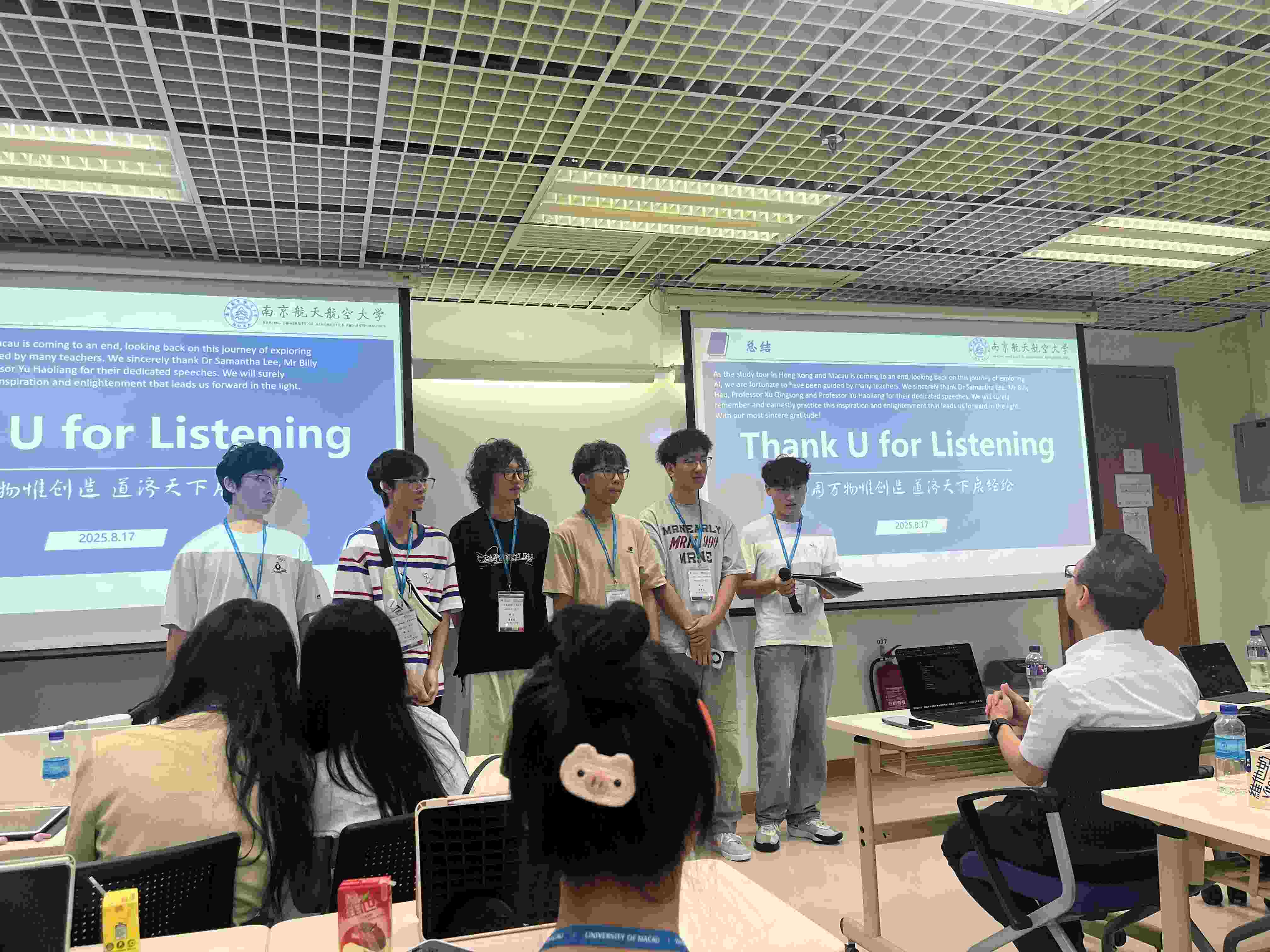最后,經(jīng)評(píng)委老師審議與綜合評(píng)定,女生組和男生組分別以小組第一與第二的優(yōu)異成績(jī),贏得了澳門大學(xué)的高度認(rèn)可。這份肯定不僅是對(duì)同學(xué)們?cè)诳缥幕瘜W(xué)術(shù)環(huán)境中所展現(xiàn)出的專業(yè)素養(yǎng)與協(xié)作精神的最佳褒獎(jiǎng),更成為推動(dòng)他們持續(xù)成長(zhǎng)的動(dòng)力,激勵(lì)同學(xué)們不僅在人工智能與機(jī)器人等前沿科技領(lǐng)域繼續(xù)學(xué)習(xí),更以開闊視野、創(chuàng)新意識(shí)和綜合素養(yǎng),面向未來、迎接挑戰(zhàn),邁向全面發(fā)展的新臺(tái)階。