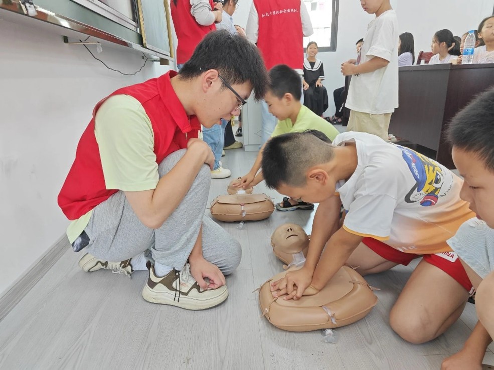 圖為孩子們學(xué)習(xí)基礎(chǔ)急救技能