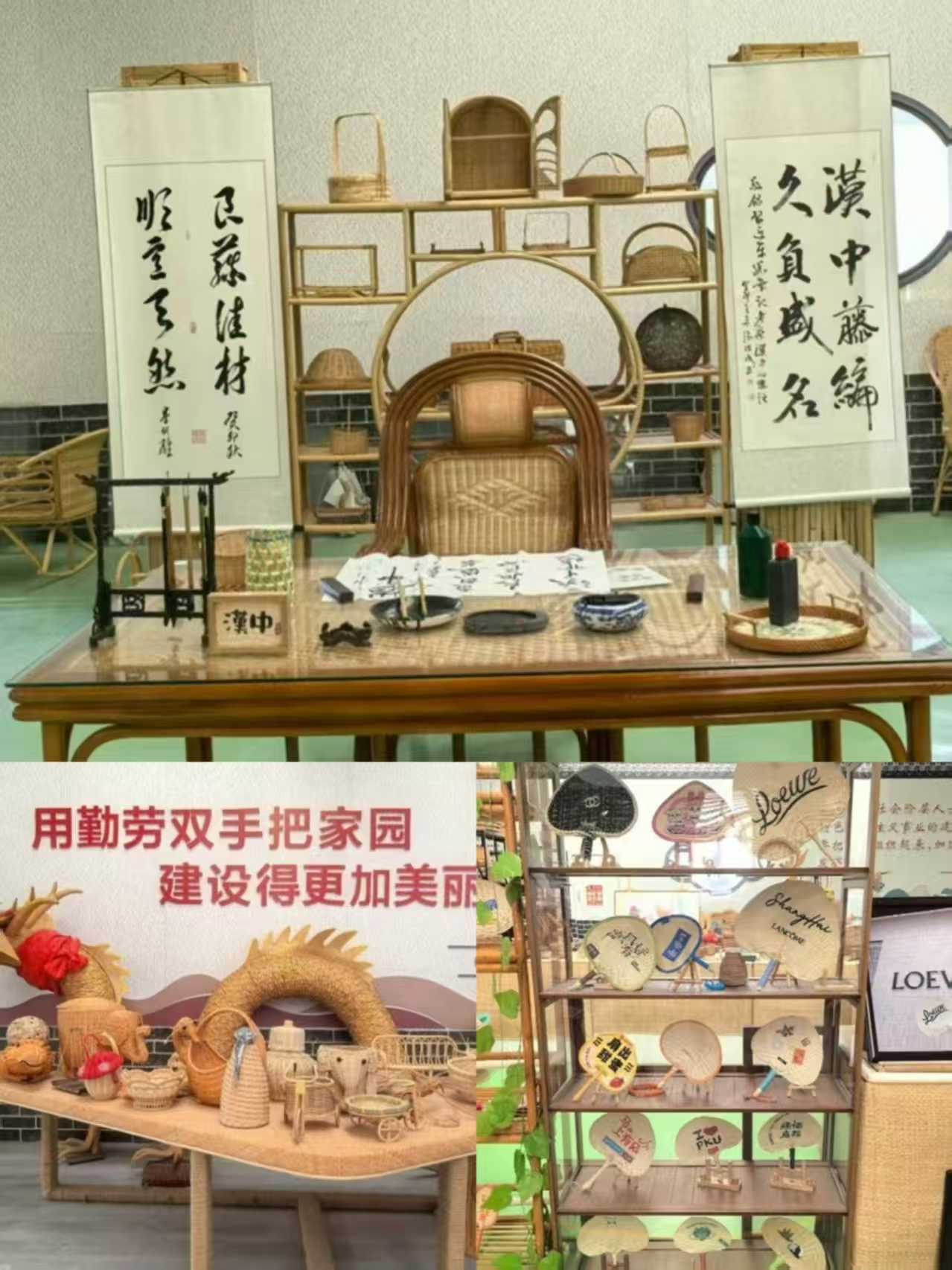 實(shí)踐隊(duì)的青年們駐足于此,看老匠人指尖翻飛,粗藤變細(xì)篾,經(jīng)緯間織就歲月的紋路。文創(chuàng)展區(qū)里,巨型藤編龍盤踞展臺,鱗爪間滿是磅礴氣勢;“馬上有風(fēng)”祈愿扇輕搖,藤編的古樸與現(xiàn)代設(shè)計的靈動撞個滿懷。一根藤條,一頭連著深山的綠意,一頭系著鄉(xiāng)村的希望,青年們觸摸著藤編的紋理,也觸摸到了非遺與時代同頻的脈搏。