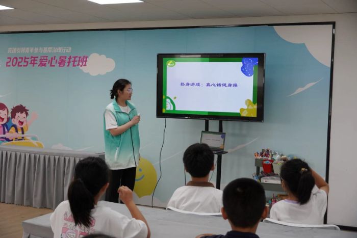 圖為社區(qū)孩子們積極配合完成“真心話健身操”游戲。 裴春蕾 陳天樂供