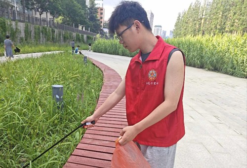 上午,隊(duì)員們手持垃圾鉗、環(huán)保袋,沿著河岸仔細(xì)清理草叢中、步道旁的塑料袋、煙頭、飲料瓶等垃圾。盡管天氣炎熱,但志愿者們干勁十足,短短兩小時(shí)內(nèi),就清理出數(shù)袋垃圾。