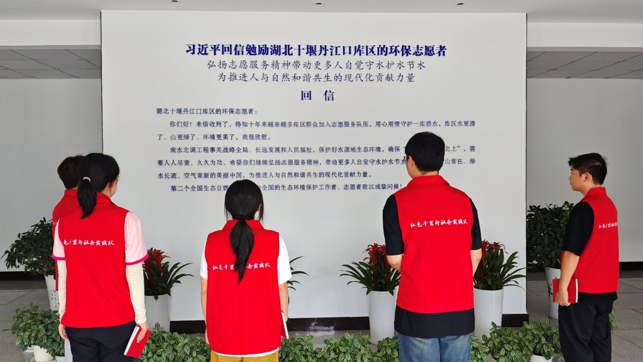 圖為實(shí)踐隊隊員觀看習(xí)近平給丹江口環(huán)保志愿者的回信