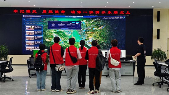實踐隊首站抵達丹江口水庫水質(zhì)安全保障指揮中心,這里承載著保障一泓清水永續(xù)北上的重大使命。在講解員的引導(dǎo)下,隊員們詳細了解了指揮中心的九大數(shù)字化監(jiān)管系統(tǒng)。