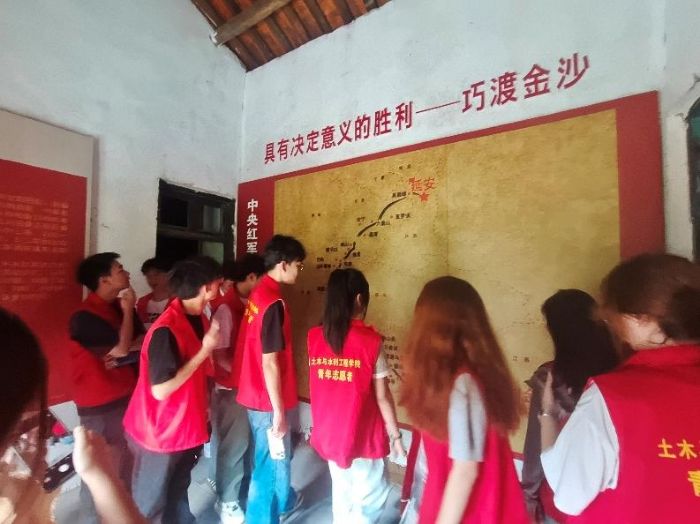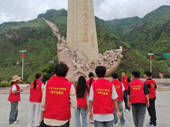 站在金沙江岸邊,奔騰不息的江水映入眼簾,滔滔江流仿佛訴說著當(dāng)年紅軍戰(zhàn)士們渡江時的艱辛與不易。通過現(xiàn)場參觀,成員們進(jìn)一步了解了紅軍巧渡金沙江的背景和細(xì)節(jié)。在遺址中實(shí)踐隊(duì)員了解到了一個個感人至深的紅色故事,讓大家深刻體會到革命先輩堅(jiān)定的理想信念和大無畏的犧牲精神。