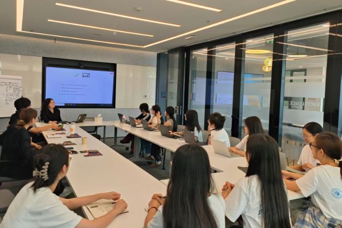 (配圖1:實(shí)踐團(tuán)成員圍坐學(xué)習(xí)企業(yè)文化。潘秀慧 供圖)