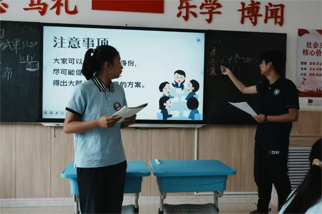 第二堂課,規(guī)則升級(jí)。學(xué)生隨機(jī)抽取新身份牌(包括不分蛋糕的“趙老師”角色),并擁有5分鐘自由協(xié)商時(shí)間。