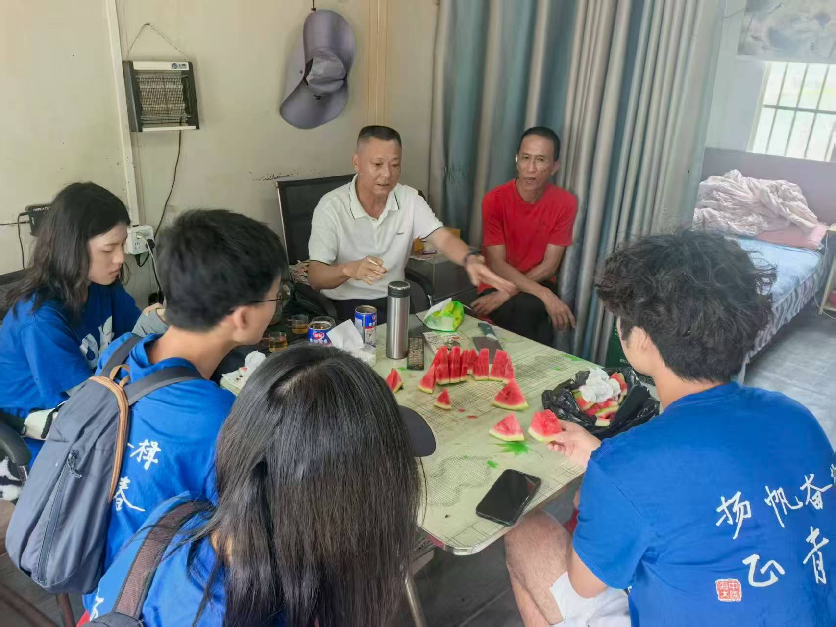圖為實踐隊與養(yǎng)殖場負責人交流場內(nèi)養(yǎng)殖現(xiàn)狀