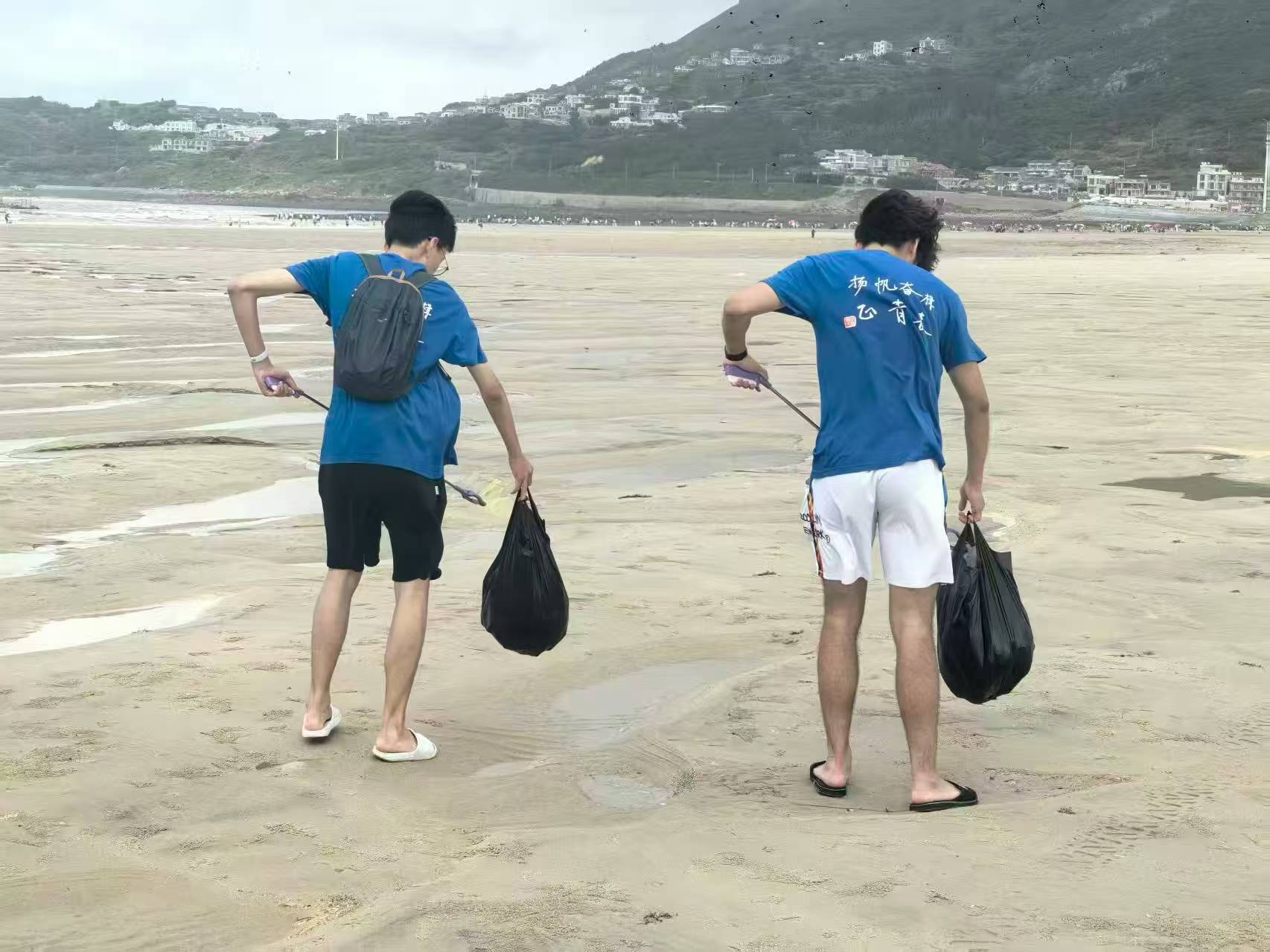 7月23日中午,實踐隊前往平潭豐盈養(yǎng)殖場參觀調(diào)研。養(yǎng)殖場負責人施正鴻介紹道:“該場以海水對蝦養(yǎng)殖為主,采用精細化、自動化管理,同時通過加固設(shè)施、監(jiān)控水質(zhì)等應(yīng)對臺風及病害風險,效益顯著”。實踐隊成員學習養(yǎng)殖設(shè)施自動化設(shè)備運轉(zhuǎn)細節(jié),與負責人深入探討如何通過技術(shù)優(yōu)化提升養(yǎng)殖效率與質(zhì)量,提出采用低成本傳感器采集基礎(chǔ)水質(zhì)數(shù)據(jù),在無人駕駛船上安裝智能投喂裝置等建議。當日下午,實踐隊抵達平潭長江澳海灘,開展海灘環(huán)保公益活動。實踐隊員們手持清潔工具沿海岸線清理塑料瓶、廢棄漁網(wǎng)、泡沫碎片等海洋垃圾,用實踐行動還原沙灘潔凈。同時,團隊成員邀請游客填寫關(guān)于平潭海岸生態(tài)的調(diào)查問卷,詢問公眾對平潭島生態(tài)保護的意見與建議。眾多游客積極參與,并在“清清我海”倡議橫幅上簽名,承諾踐行環(huán)保理念。此次公益活動獲當?shù)赜慰团c環(huán)衛(wèi)工人的一致好評,展現(xiàn)了新時代青年服務(wù)社會、守護碧海藍天的責任與擔當。