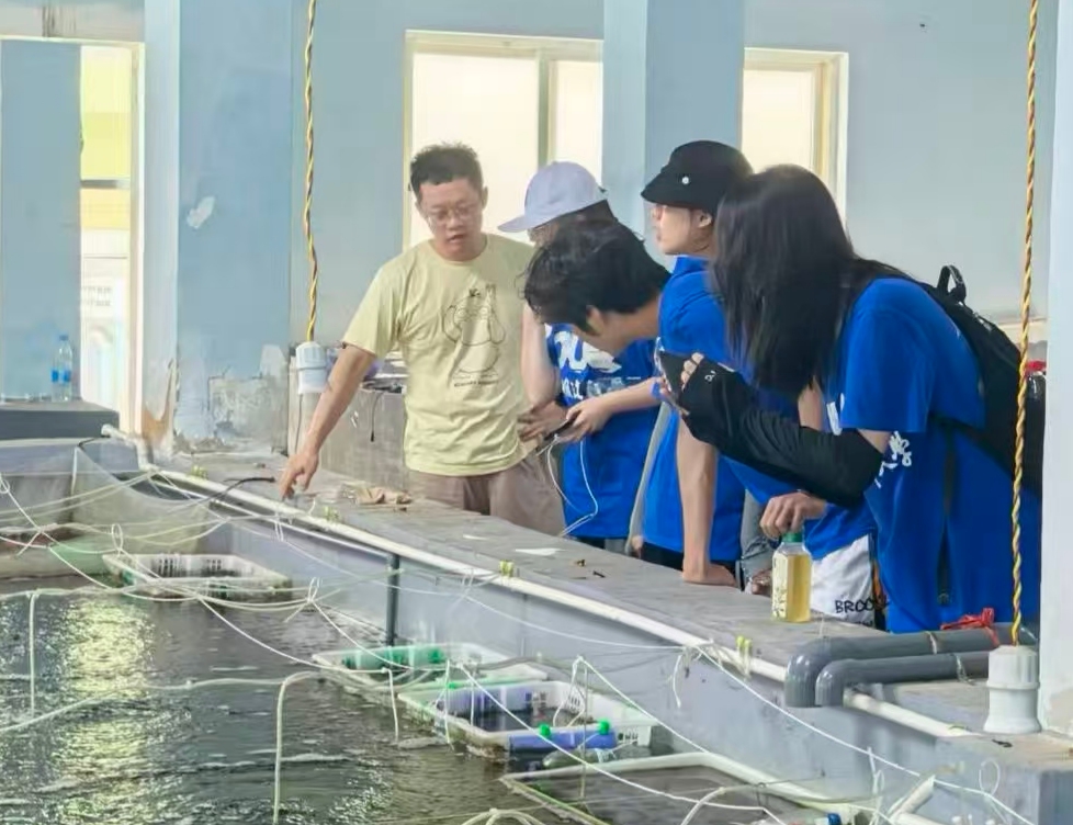8月14日上午,實踐隊抵達廈門市海洋與漁業(yè)研究所,參觀了海洋貝類遺傳育種平臺與鰻鱺繁育研發(fā)平臺,深入了解鮑魚、東風螺、鰻鱺、海膽等水產(chǎn)養(yǎng)殖品種的養(yǎng)殖環(huán)境與方式、育苗過程與技術(shù)等細節(jié)。同時,實踐隊成員與研究所許天博士探討通過改良育種技術(shù)、優(yōu)化養(yǎng)殖方式等改善生產(chǎn)函數(shù),提高水產(chǎn)養(yǎng)殖的產(chǎn)量和質(zhì)量,實現(xiàn)更少的投入帶來更多的產(chǎn)出。