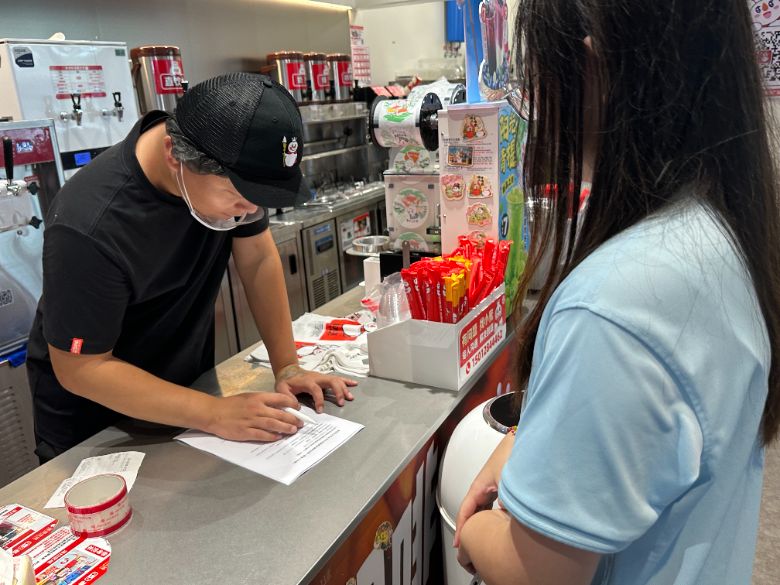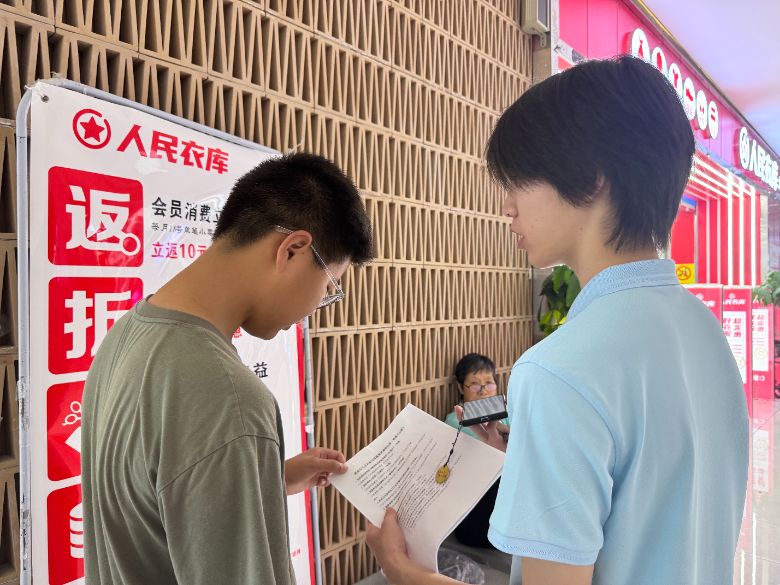清晨,實踐團以臨安人民廣場為中心,對周邊商鋪展開走訪調(diào)研。隊員們分組行動,重點采訪了文創(chuàng)店鋪、傳統(tǒng)手工藝品店以及非遺針灸等經(jīng)營者。除部分經(jīng)營者正在處理事宜婉拒外,大部分經(jīng)營者都愿意配合調(diào)研。五金店王老板表示:"我不是很了解雞血石,但是我知道他是我們臨安的特色!"隊員們認真記錄著每一份問卷背后的故事,商鋪玻璃柜臺映照出他們專注的身影。
