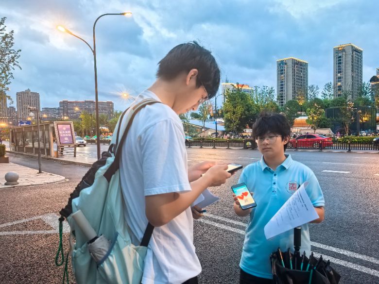 華燈初上,實踐團轉(zhuǎn)戰(zhàn)寶龍廣場商圈,在人流密集處開展隨機問卷調(diào)研。隊員們手持紙質(zhì)問卷穿梭在納涼人群中,耐心向不同年齡段的市民講解調(diào)研目的。"您好,請問您知道臨安雞血石雕刻嗎?""小朋友,學(xué)校組織過非遺體驗課嗎?"......廣場的霓虹燈下,問卷的翻頁聲與歡聲笑語交織成特殊的夜曲。有位媽媽說:“我丈夫平時喜歡研究這個,偶爾也會帶著小孩一起研究。”一道道聲音傳入實踐團的隊員心中,有人拿著填滿的問卷感慨:“希望非遺技藝能走進校園,讓更多的人了解傳統(tǒng)手工藝品。"