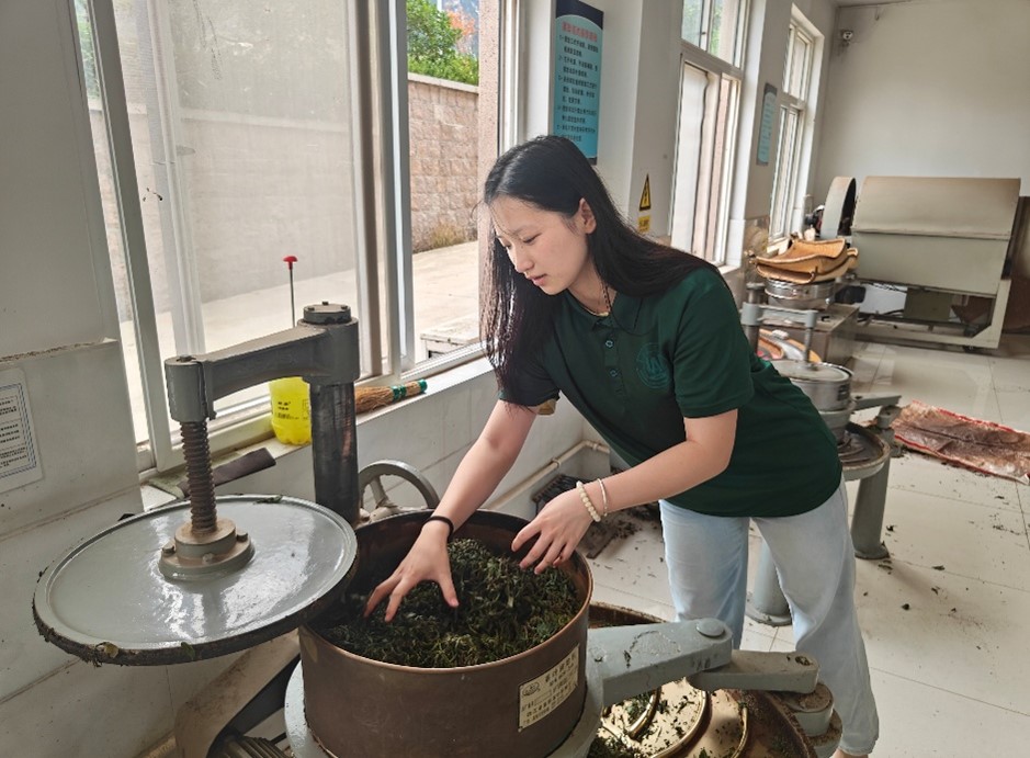 最后一站,實(shí)踐團(tuán)進(jìn)入制茶車間,學(xué)習(xí)綠茶、紅茶等不同品類茶葉的加工工藝與機(jī)械設(shè)備操作,并親身參與茶葉制作流程。通過實(shí)地體驗,同學(xué)們深刻感受到生態(tài)種植模式在品牌打造和市場溢價中的重要作用,了解到消費(fèi)者對綠色防控產(chǎn)品的高度認(rèn)可,從而對茶產(chǎn)業(yè)全鏈運(yùn)作模式形成更直觀、系統(tǒng)的認(rèn)知。