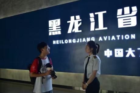 (圖為采訪黑龍江省航空科普館館內(nèi)工作人員)