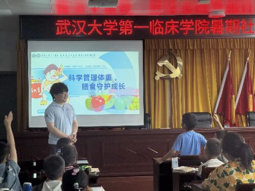從政策調(diào)研的“筆墨紙硯”到健康科普的“童言童語(yǔ)”,實(shí)踐隊(duì)的青春足跡在五峰山間不斷延伸。五峰縣圖書館的“人體結(jié)構(gòu)大拼圖”剛鋪開(kāi),孩子們便迫不及待地爭(zhēng)著當(dāng)“器官指揮官”,在探索身體奧秘的互動(dòng)中,求知的眼睛閃閃發(fā)亮;在橋河社區(qū)的課堂上,隊(duì)員們精心編排的情景劇將免疫系統(tǒng)工作原理生動(dòng)呈現(xiàn),當(dāng)“過(guò)敏原”被“抗體”成功抵御的場(chǎng)景上演,在陣陣笑聲中,臺(tái)下小觀眾們對(duì)“識(shí)別過(guò)敏原、做好自我防護(hù)”的理解悄然加深;仁和坪鎮(zhèn)的“膳食寶塔”科普點(diǎn)前,10歲的小雨踮起腳測(cè)量BMI,興奮地問(wèn)道:“大哥哥,我是不是能多吃塊排骨啦?”