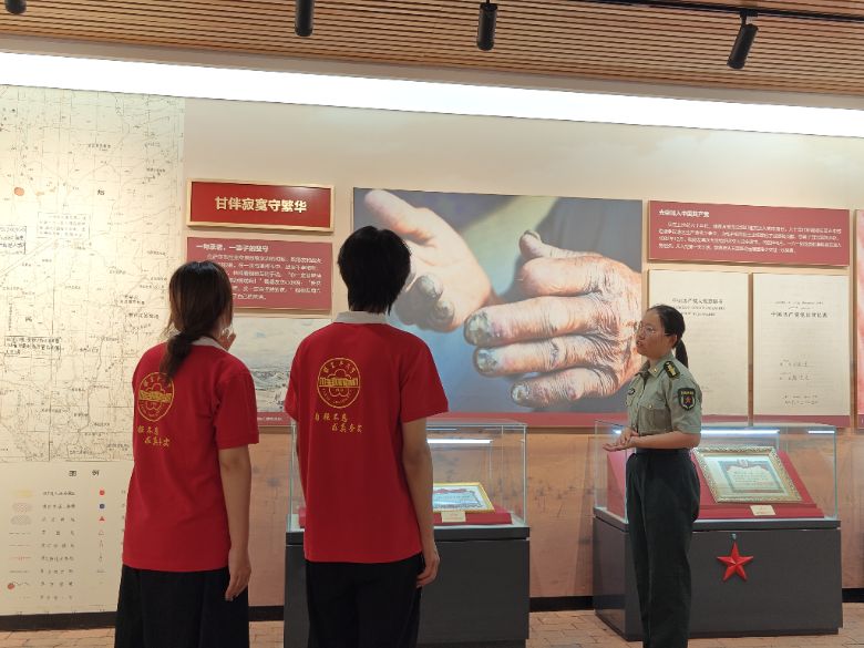 活動(dòng)期間,實(shí)踐團(tuán)成員們首先參觀(guān)了魏德友戍邊事跡展覽館。館內(nèi)陳列的望遠(yuǎn)鏡、軍用水壺、戍邊日記等實(shí)物,守著孤寂蒼茫戈壁,魏德友走過(guò)了整整一個(gè)甲子。據(jù)講解員介紹,自1964年轉(zhuǎn)業(yè)以來(lái),魏德友累計(jì)巡邊里程達(dá)20萬(wàn)公里,這些展品成為其“用腳步丈量國(guó)土”的見(jiàn)證。塔里木大學(xué)方馨在參觀(guān)后表示,這些展品讓她深刻感受到這是一位心中有信仰,肩上有使命,眼里有光芒,腳下有力量的英雄。