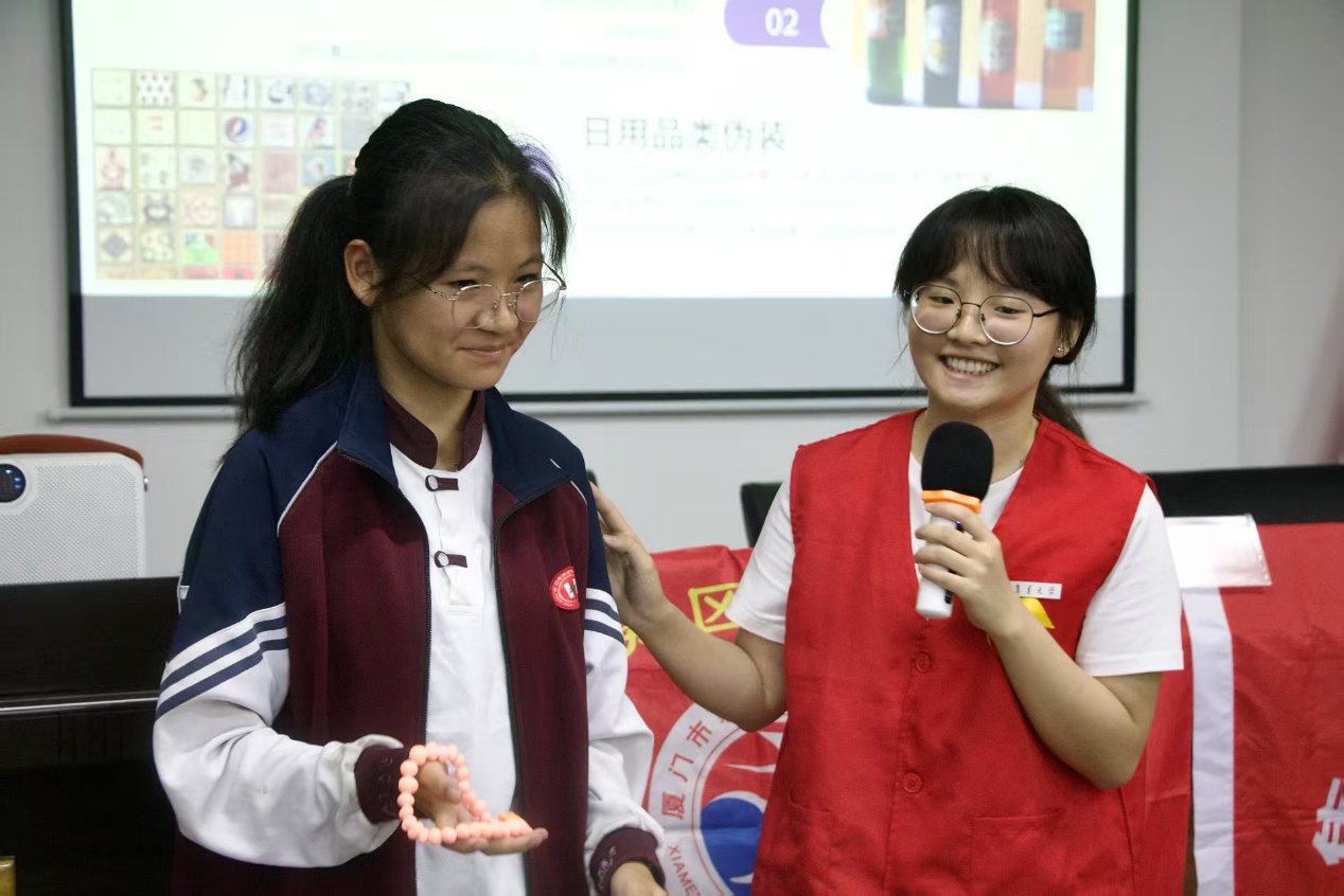 女孩在回答回答禁毒小問(wèn)答 夏玥攝