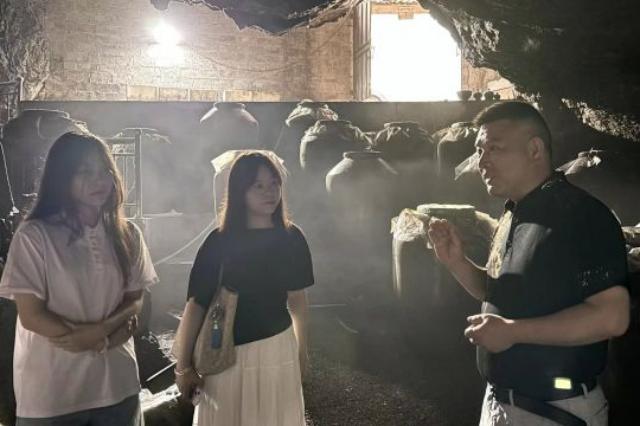 實(shí)踐團(tuán)還探訪了酒坊的核心寶藏——天然恒溫儲酒山洞。洞內(nèi)冬暖夏涼,為美酒陳化提供了絕佳環(huán)境。當(dāng)?shù)貎?yōu)質(zhì)山泉水的甘洌清甜是釀出獨(dú)特風(fēng)味的核心密碼,與恒溫山洞共同構(gòu)成了“天時(shí)、地利、人和”的釀造生態(tài)。