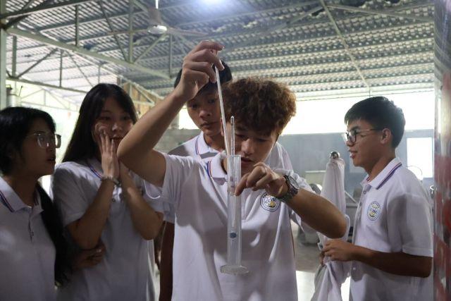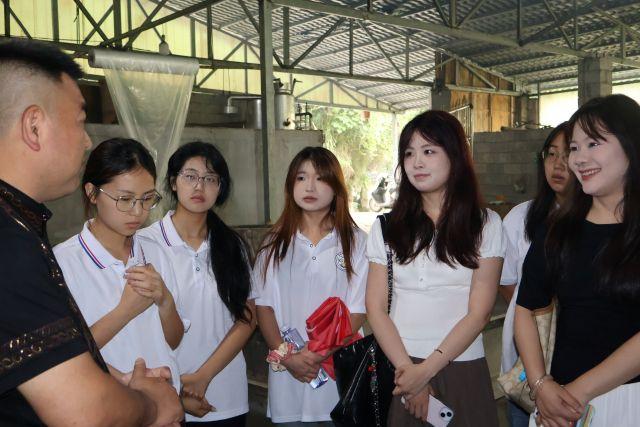 在當(dāng)?shù)刎?fù)責(zé)人黃平帶領(lǐng)下,實(shí)踐團(tuán)深入釀酒生產(chǎn)線,參與糧食配比、泡米、蒸煮等環(huán)節(jié),了解傳統(tǒng)固態(tài)發(fā)酵工藝,學(xué)習(xí)蒸餾提純(需舍棄含有害物質(zhì)的“頭道酒”)、酒度測量(含溫度校正技巧)等知識,并探訪天然恒溫儲酒山洞,知曉當(dāng)?shù)厣饺c恒溫環(huán)境是釀酒關(guān)鍵。