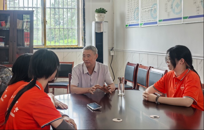 圖為團(tuán)隊(duì)成員采訪科技特派員劉站長(zhǎng)。郁雯涵 供圖