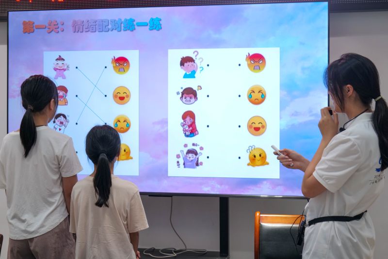 圖為“情緒特工隊”課程中,隊員通過連連看小游戲幫助孩子們識別情緒。林欣榕 供圖