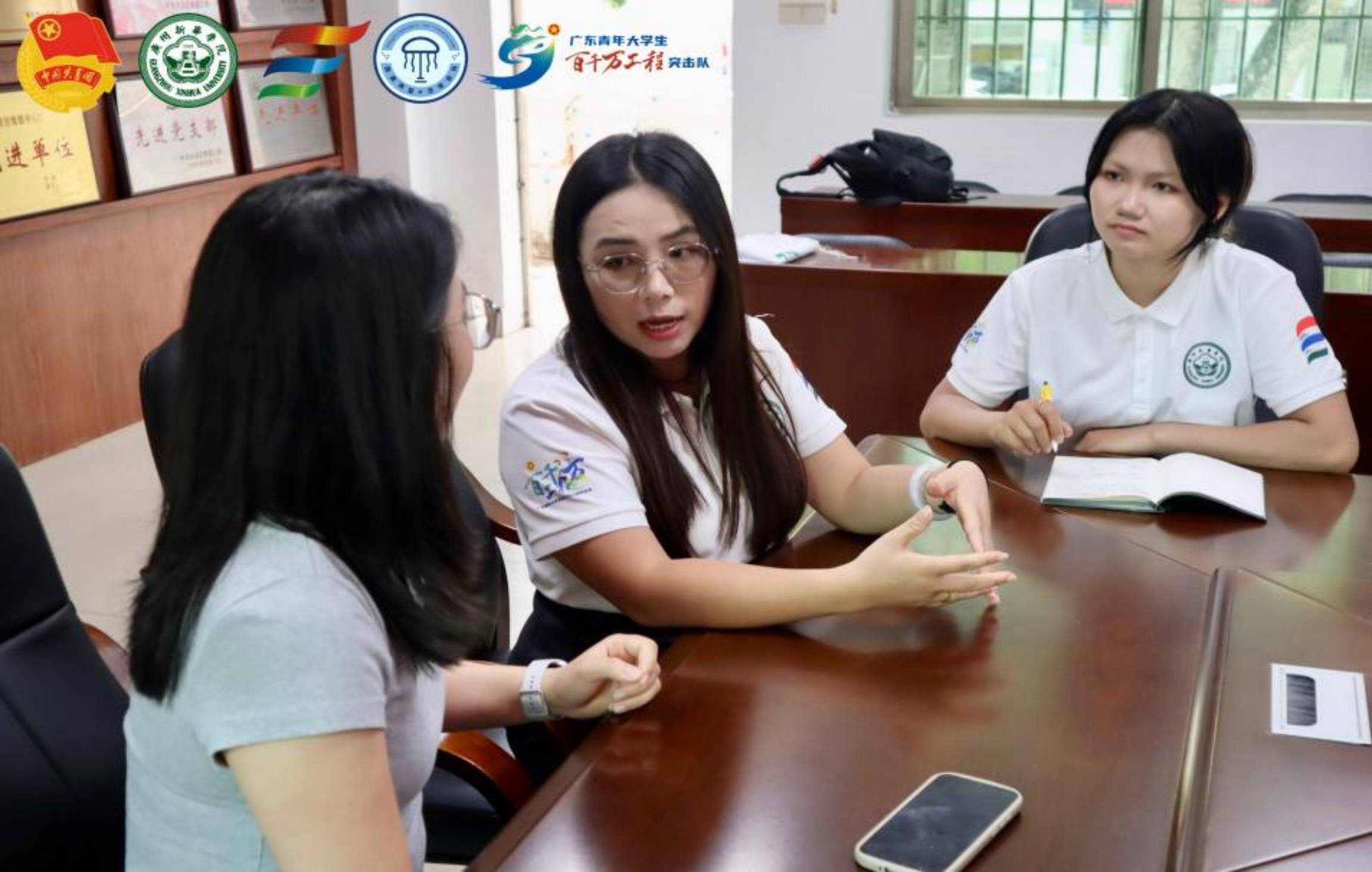 (圖三:指導(dǎo)老師溫小婷、團(tuán)隊隊長陳曉瑩與大山江街道團(tuán)工委書記鄭子慧座談交流)