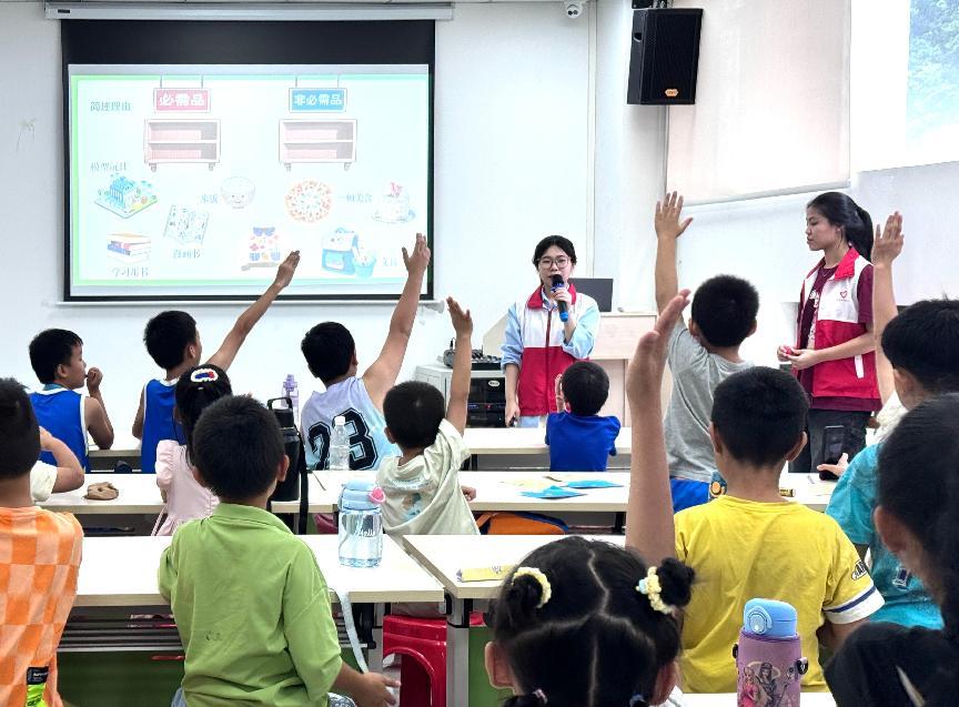 2025年7月15日,華南師范大學(xué)物理學(xué)院四進永和服務(wù)隊隊員黃晴在廣州市黃埔區(qū)永和社工服務(wù)站社區(qū)活動中心開展了“小小財富探險家之零花錢大作戰(zhàn)’財商啟蒙課程”。課程通過情景模擬、互動游戲和小組討論等形式,引導(dǎo)孩子們認(rèn)識金錢來源、學(xué)會合理消費與儲蓄,幫助基層兒童形成正確的價值觀。