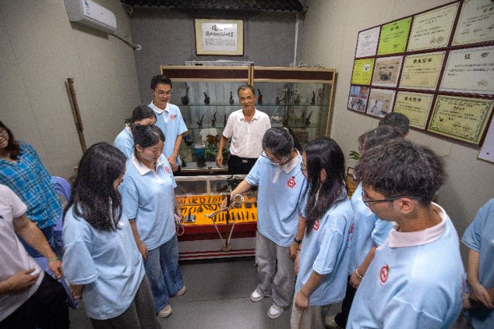 體驗(yàn)結(jié)束,隊(duì)員們采訪了非遺傳承人,詢問(wèn)非遺傳承歷程、面臨挑戰(zhàn)及創(chuàng)新探索。傳承人的分享,讓隊(duì)員們加深了對(duì)非遺保護(hù)重要性的認(rèn)識(shí),也對(duì)習(xí)近平總書記在文化傳承發(fā)展座談會(huì)上重要講話精神的實(shí)踐意義有了更深刻理解。