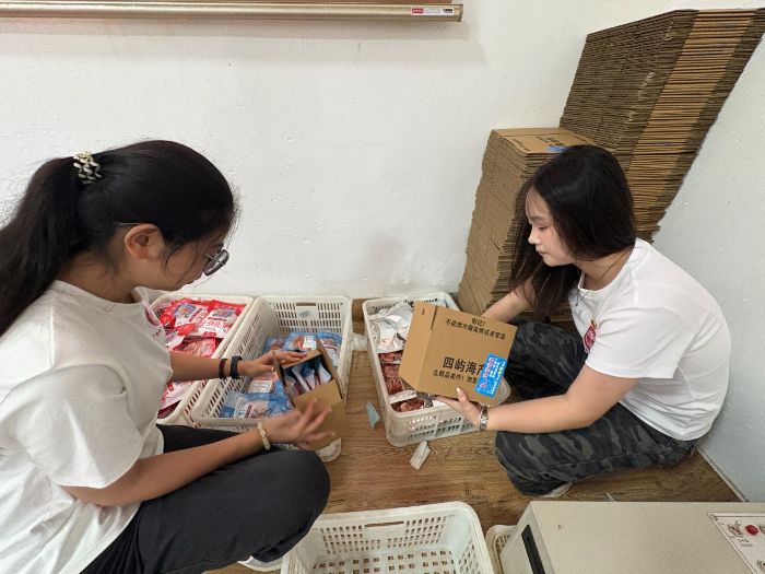 圖7 實(shí)踐隊(duì)員實(shí)地體驗(yàn)電商產(chǎn)品包裝貼單