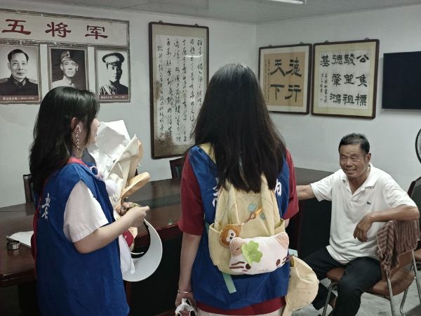 7月2日下午由團(tuán)隊(duì)成員開展紅色精神的宣講,并且發(fā)放調(diào)查問卷收集的居民的反饋。結(jié)束后,聯(lián)系當(dāng)?shù)貙で蠓答。最后進(jìn)行烈士家屬的慰問與幫助。