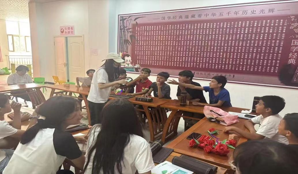 7月18日,湘西州古丈縣斷龍山鎮(zhèn)白溪關(guān)村的黨群服務(wù)中心活動室暖意融融,湖南工商大學(xué)“望山”青禾服務(wù)隊為當(dāng)?shù)厝嗝嗌倌觊_展“守