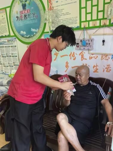 巢湖學(xué)院赴巢湖鄉(xiāng)鎮(zhèn)“獻(xiàn)血賦能健康調(diào)研”宣傳團(tuán),半湯診所發(fā)放宣傳單和問(wèn)卷,普及獻(xiàn)血相關(guān)知識(shí)。