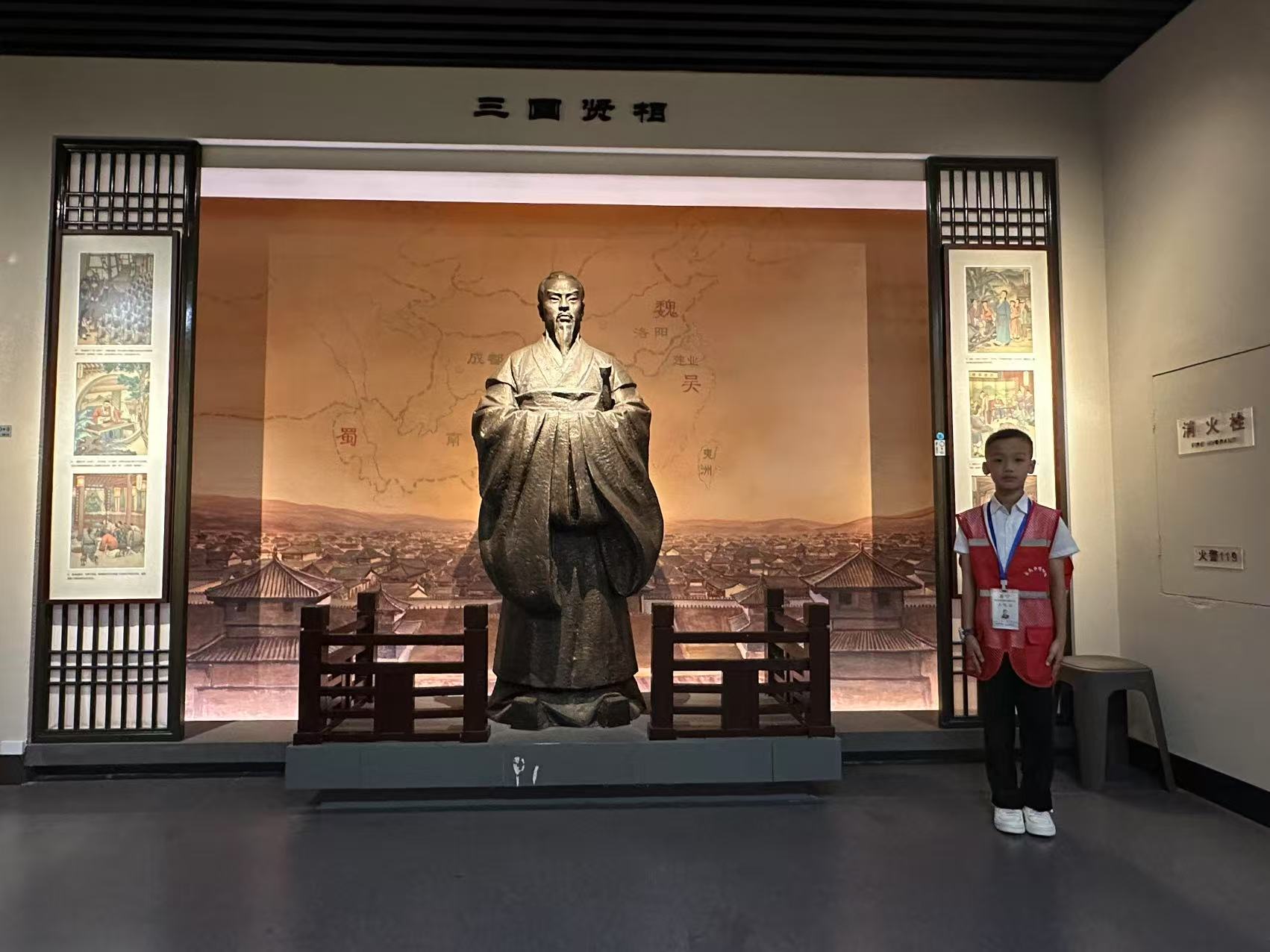 展區(qū)一角,“三國文化與安全科普” 的融合展陳別出心裁:既有三國時期的城防智慧,也有現(xiàn)代消防知識(火警 119)的科普。團(tuán)隊從中獲得靈感,將歷史中的安全智慧與當(dāng)下需求結(jié)合,在返程前走進(jìn)附近社區(qū),為居民和孩子們開展了一場特別的安全宣講。從 “古人如何防火” 的趣味故事,到 “現(xiàn)代消防逃生技巧” 的實(shí)操演示,再到暑期防溺水的重點(diǎn)提醒,古今對話間,安全意識悄然融入人心。
