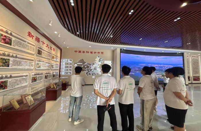 當日,在研究院開熱木拉·阿布都艾尼老師的帶領下,實踐團開啟了參觀之旅;顒右潦迹蠋煙崮纠·阿布都艾尼播放了一段主題宣傳片,生動展現麥蓋提紅棗產業(yè)的發(fā)展歷程、科研成果與品牌價值,讓成員們對當地紅棗產業(yè)的宏偉藍圖有了宏觀認知。