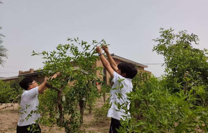 在大田實踐環(huán)節(jié),成員們來到紅棗種植基地,開展去除棗樹頂端優(yōu)勢作業(yè),親身體驗了松土、施肥等農事操作。通過修剪優(yōu)化植株養(yǎng)分分配,提升紅棗坐果潛力。同時,學習依據葉片、果實特征識別棗縮果病、桃小食心蟲等病蟲害,掌握綠色防控手段。成員們將理論知識用于實踐,提升專業(yè)能力,也體會到科學種植對紅棗品質與產量提升的關鍵作用。