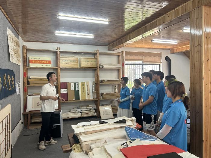 7月5日,實(shí)踐團(tuán)隊(duì)抵達(dá)涇縣涇川鎮(zhèn)守金皮紙廠,在紙廠負(fù)責(zé)人熱情接待與講解下,開啟傳統(tǒng)技藝探秘之旅。團(tuán)隊(duì)成員們?cè)谪?fù)責(zé)人的帶領(lǐng)下參觀了皮紙制作車間一系列傳統(tǒng)工序。負(fù)責(zé)人介紹,守金皮紙廠傳承涇縣皮紙制作技藝,在遵循古法的同時(shí)也結(jié)合新的生產(chǎn)技術(shù)從而產(chǎn)出滿足不同需求的皮紙,被廣泛用于書畫與產(chǎn)品包裝等領(lǐng)域。