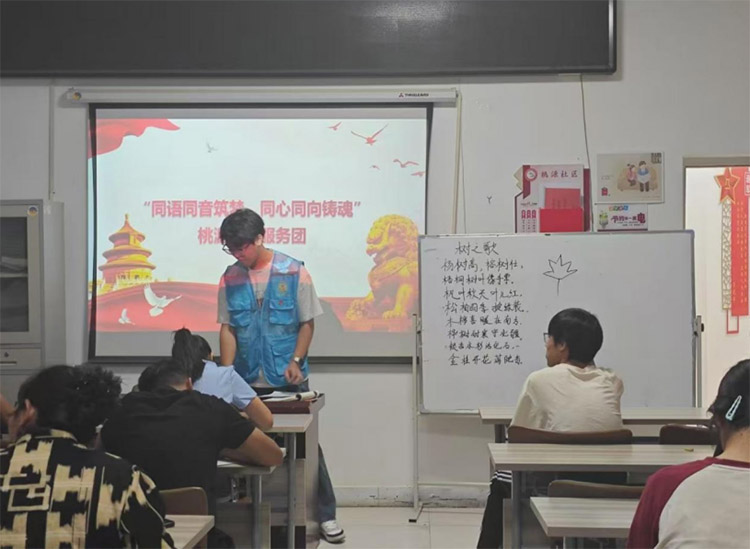 2025年7月4日至2025年7月13日,“同語(yǔ)同音筑夢(mèng),同心同向鑄魂”桃源志愿服務(wù)團(tuán)聯(lián)合桃源社區(qū)新時(shí)代文明實(shí)踐站為桃源社區(qū)的少數(shù)民族商戶推廣普通話開(kāi)展了為期十天的社會(huì)實(shí)踐活動(dòng)。