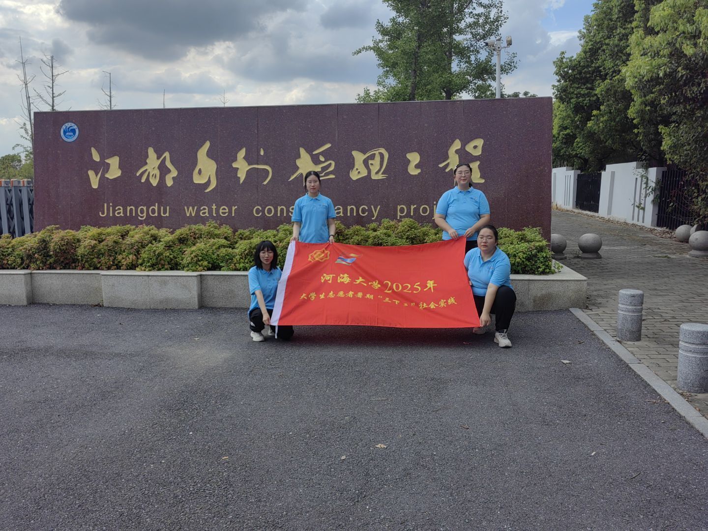 實(shí)踐團(tuán)成員在江都水利樞紐門前合影
