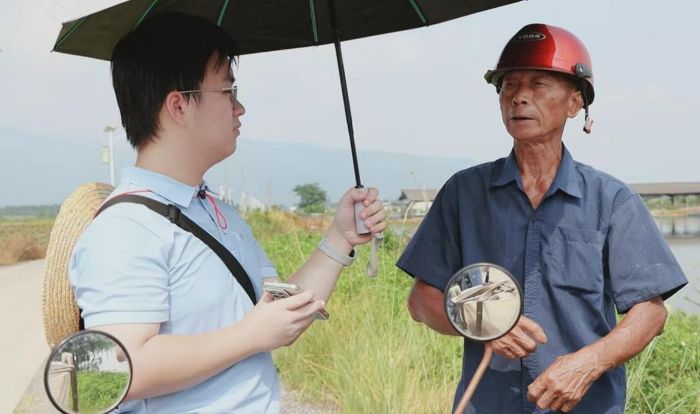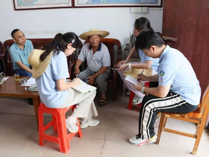 圖為肇慶學(xué)院“芡”途似錦突擊隊隊員采訪當(dāng)?shù)卮彘L。賴冰慧供圖