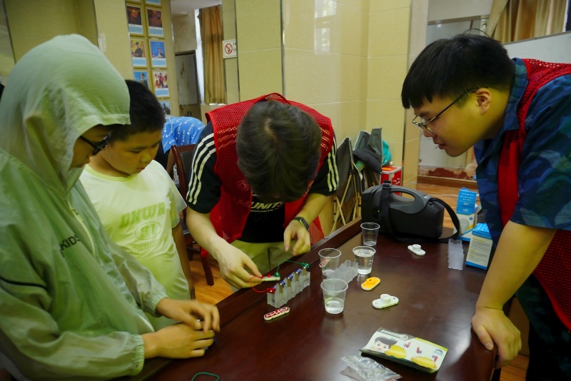 為了確保每位孩子都能動手參與并真正理解實驗原理,志愿者們實行一對一式貼心指導(dǎo),從組裝線路、連接元件到解釋能量轉(zhuǎn)化的原理,每個步驟都細(xì)致入微,孩子們也全神貫注地投入其中。部分家長也參與了活動,并就家庭用電安全等問題向志愿者進(jìn)行咨詢。