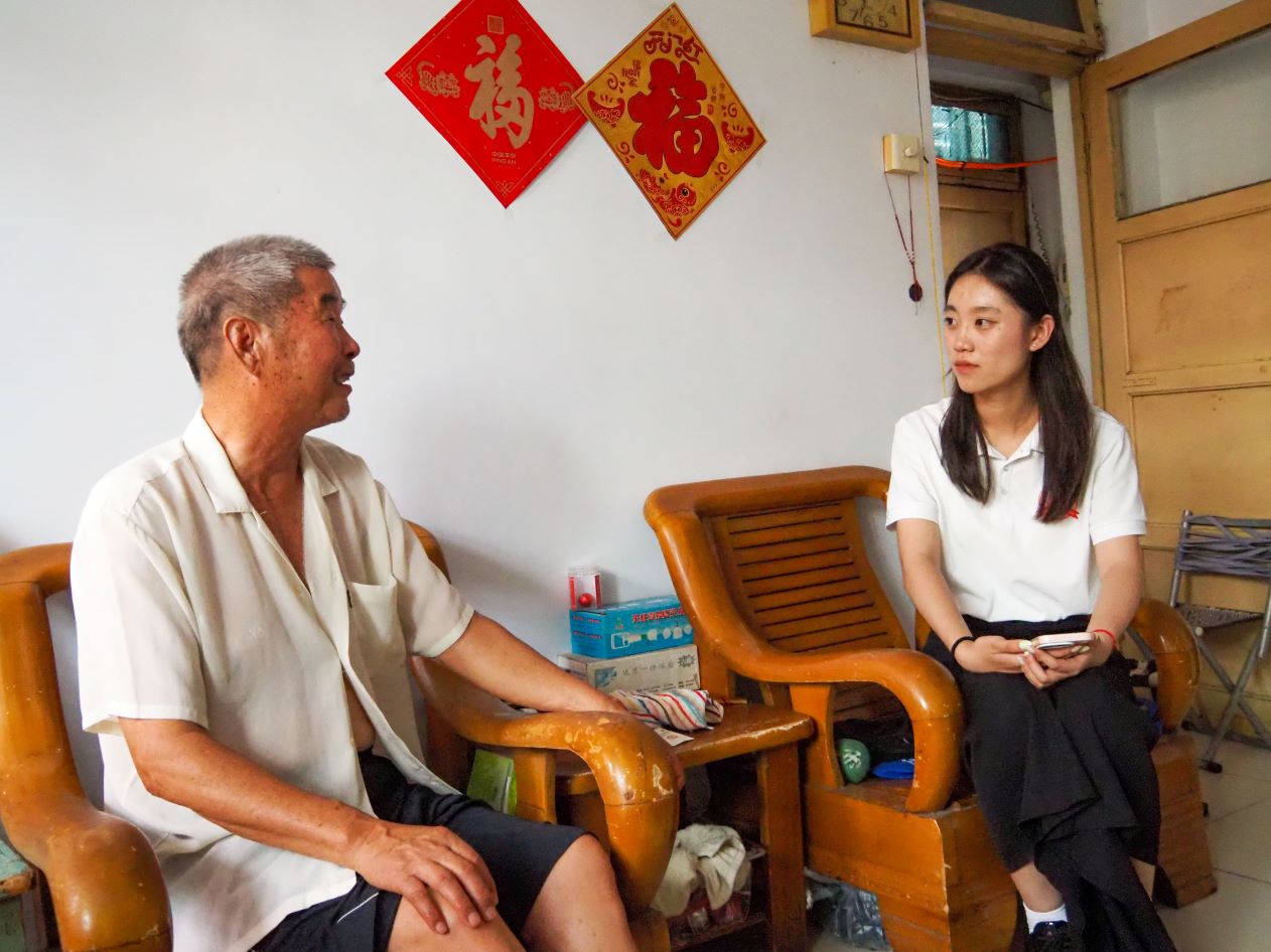 圖為孫銘悅采訪曹金勝爺爺 山東理工大學李穎能提供