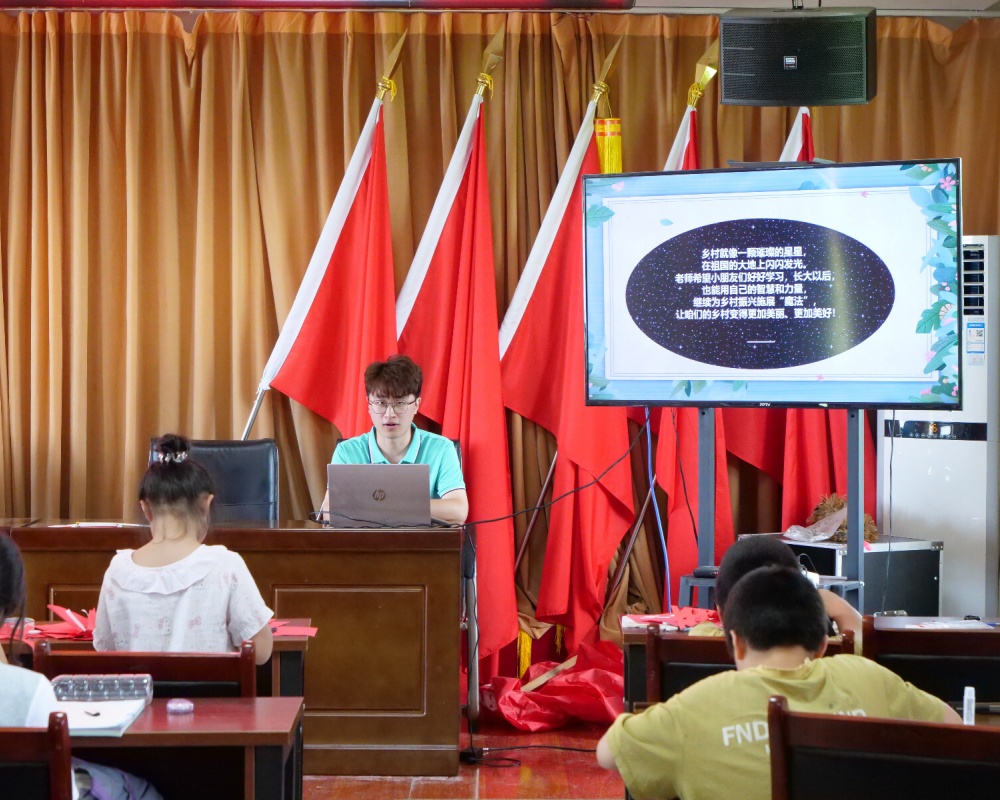 針對(duì)孩子們英語(yǔ)基礎(chǔ)薄弱的情況,隊(duì)員們精心設(shè)計(jì)互動(dòng)教學(xué)環(huán)節(jié),通過(guò)趣味游戲、情景對(duì)話等方式激發(fā)學(xué)習(xí)興趣。“以前覺(jué)得英語(yǔ)難,但今天的大哥哥大姐姐教得很有趣!”一位參與課堂的小朋友說(shuō)道。在"鄉(xiāng)村振興小課堂"上,團(tuán)隊(duì)成員用通俗易懂的語(yǔ)言講解鄉(xiāng)村振興戰(zhàn)略,引導(dǎo)孩子們思考家鄉(xiāng)的未來(lái)發(fā)展。課上,孩子們積極發(fā)言,用語(yǔ)言描繪對(duì)美好生活的向往。